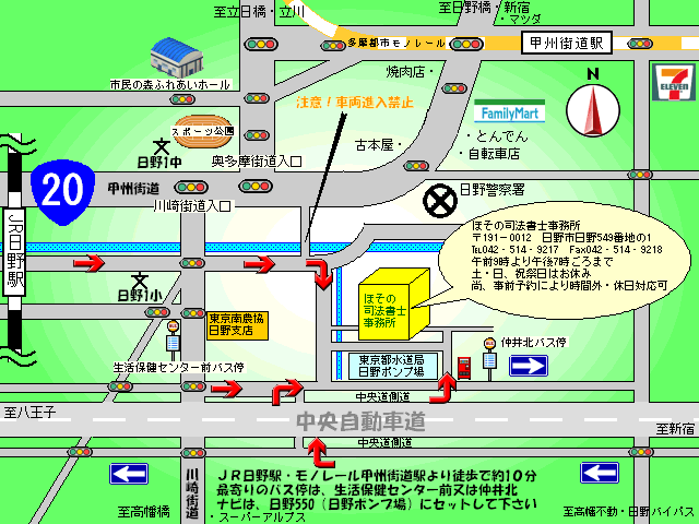 当事務所は、JR日野駅又は多摩都市モノレール甲州街道駅より